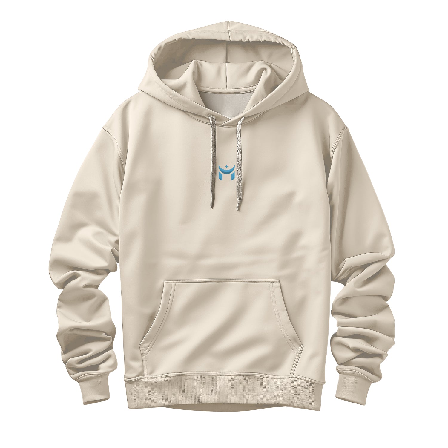 The Midnight Watch Beige Logo lettermark hoodie features: